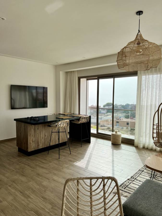 Laissez vous séduire … par le luxe Isli By Mood vous accueille chaleureusement dans la douceur D' Imsouane ce petit village est Situé sur la plus belle plage du Maroc, à 1h30 d'agadir offrant une superficie de 100m2 vous serez séduits par son style art Déco contemporain , son confort sa surface a vivre et sa sérénité . Séjours, Vacances , Week-end …. entre amis , en famille ou professionnels. Pour surfer ou simplement se dépayser et revenir aux sources Isli by Mood répondra a vos attentes . Vous vous détendrez sur les terrasses des chambres . Une grande pièces a vivre avec cuisine ouverte ( entièrement équipée) sur le séjour pour organiser votre diners et déjeuners . Isli By Mood propose 2 grandes chambres aménagées rangement ( literie neuve ) avec terrasse privative ainsi que 2 salle de bains douche Tout le confort avec une décoration raffinée. Isli est entièrement neuf , il dispose d'une vue panoramique sur la mer aménagé avec le plus grand raffinement mêlant le confort moderne ( climatisation intégrée. , Wifi, smart tV …) et la touche d'authenticité avec une décoration berbère du meilleur goût . isli est à proximité de la plage de ses restaurants et de ses spots de surf Laissez vous tenter par la douceur de vivre Imsouane, ce joyau caché du Maroc est en train de devenir l'une des destinations préférées du monde du surf. C'est un endroit idéal à visiter en hiver, ses paysages magnifiquement authentiques et son ambiance tranquille et décontractée A votre arrivée, vous serez accueillis par notre concierge , qui veillera au bon déroulement de votre séjour (nettoyage professionnel, draps et serviettes de qualité hôtelière fourni, remise des clés…)